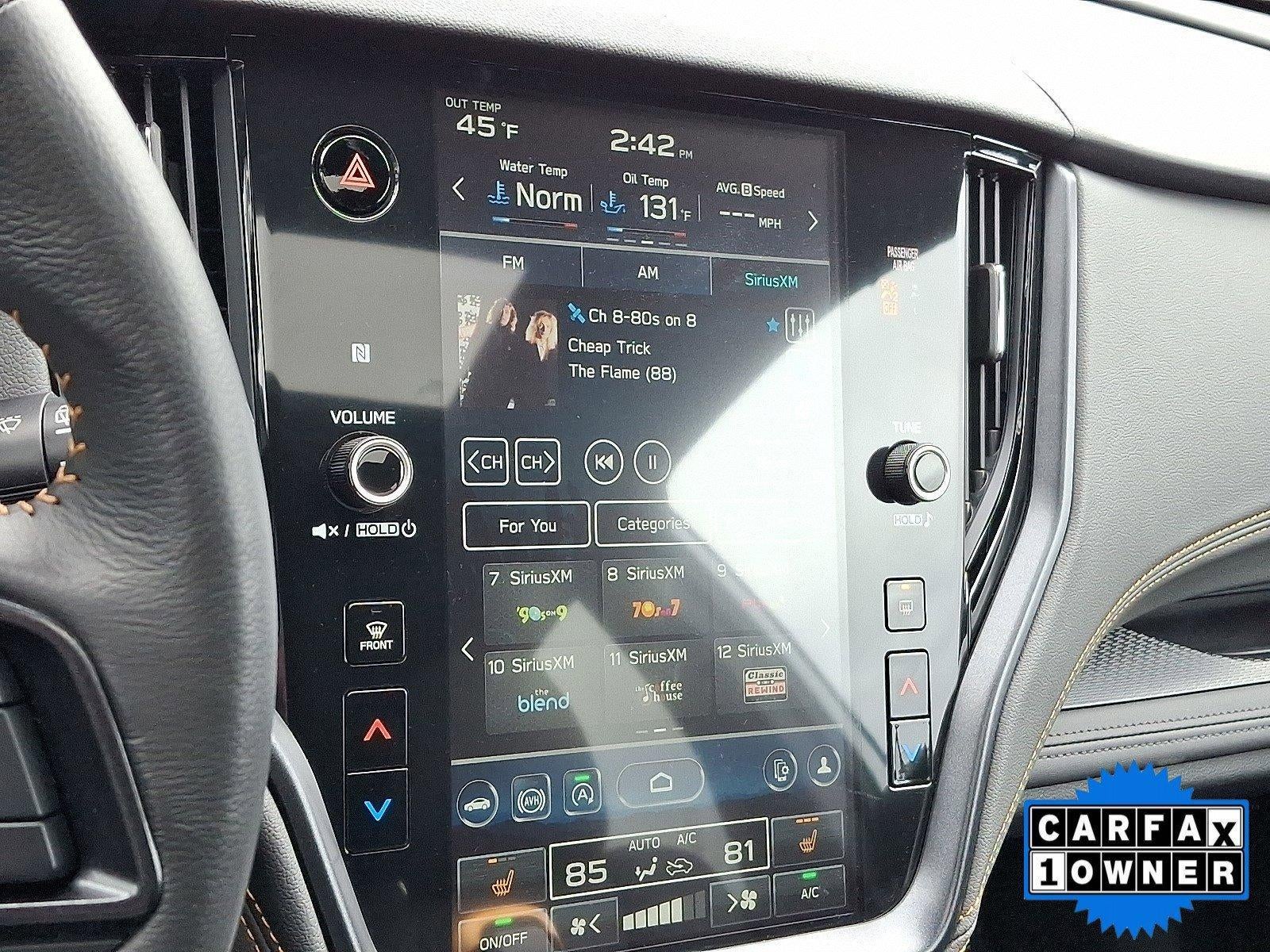 - Radio: Subaru 11.6" Multimedia Plus System -inc: AM/FM stereo, HD Radio, valet mode, multi-touch gesture high resolution display screen, voice activated controls, Bluetooth® audio streaming and hands-free phone connectivity w/SMS text messaging (refer to subaru.com for cell phone compatibility), Near Field Communication (NFC), iPod control capability, SiriusXM w/360L (4 months free trial/subscription required after), SiriusXM Travel Link (3 years free trial/subscription required after), smartphone integration for Android Auto and Apple CarPlay w/full screen view and wireless connection, USB and Over The Air (OTA) audio system update, audio system and Bluetooth® steering wheel control switches, 576 watt harman/kardon surround sound system w/12 speakers, illuminated 3.5mm auxiliary input jack and illuminated USB-A and USB-C input/charge ports